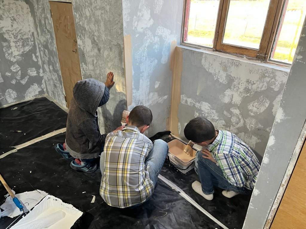 We began painting in May, just the boys and me, but the job stalled as one thing after another cropped up. Visitors, illnesses, a broken bone, unexpected errands—each time we tried to make progress, something else seemed to pop up.