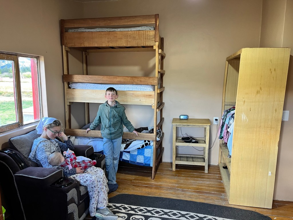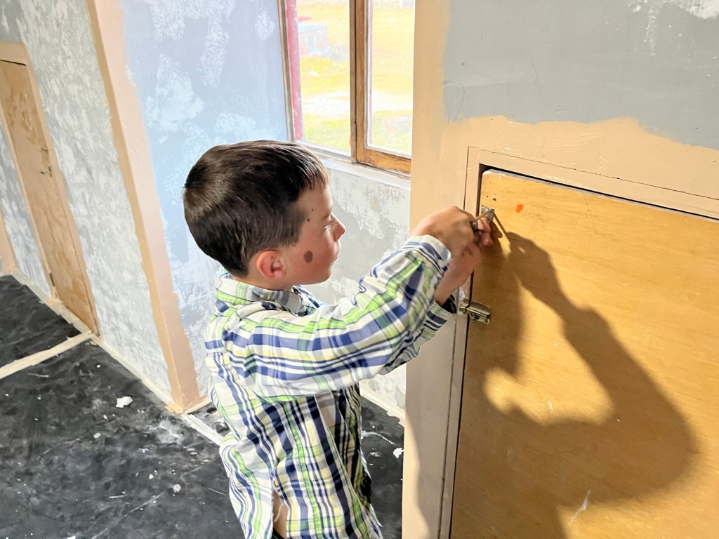 Then, in June, Kenton Slabaugh came to visit, and one of the first things he jumped into was helping finish the painting and reinstall the bunk beds. I was finally able to help move the rest of the furniture back in and put the room in order.