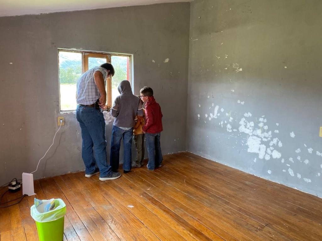 In April, we set out to tackle a long-overdue project: redoing the boys’ bedroom. The walls and ceiling had innumerable scratches, dents, and holes, plus one window wall that had been damaged over the years by rain.